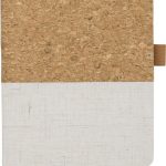 Dit is een stijlvol notitieboekje in A5-formaat. Het notitieboekje combineert een omslag van kurk en katoen. Het is uitermate geschikt als promotieartikel. Dit notitieboekje kan worden bedrukt met je eigen bedrijfslogo of boodschap. Het biedt 80 pagina’s voor aantekeningen en notities.