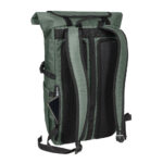 Het buitenmateriaal is gemaakt van gerecycled rPET. De rugzak heeft een groot voorvak met ritssluiting. Aan de zijkanten zijn er twee vakken voor bijvoorbeeld drinkflessen. Er is een functionele lusband met een elastisch koord. Het draagsysteem van de rugzak is gevoerd voor draagcomfort. De rugzijde heeft een verborgen ritsvak. De bodem van de tas is ook gevoerd. De handgrepen op de rug kun je gebruiken als bevestigingslussen voor trolley stangen.