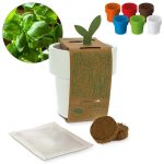 Dit is de Hot-but-cool beker, een multifunctioneel promotieartikel. Het product wordt geleverd met een pakje basilicum zaadjes. Je gebruikt de beker eerst als bloempotje. Als het plantje groot genoeg is, kun je het overzetten in de tuin. De beker is daarna eenvoudig schoon te maken. Je gebruikt het artikel vervolgens als dubbelwandige koffiemok. Dit product kun je laten voorzien van jouw eigen bedrijfslogo.
