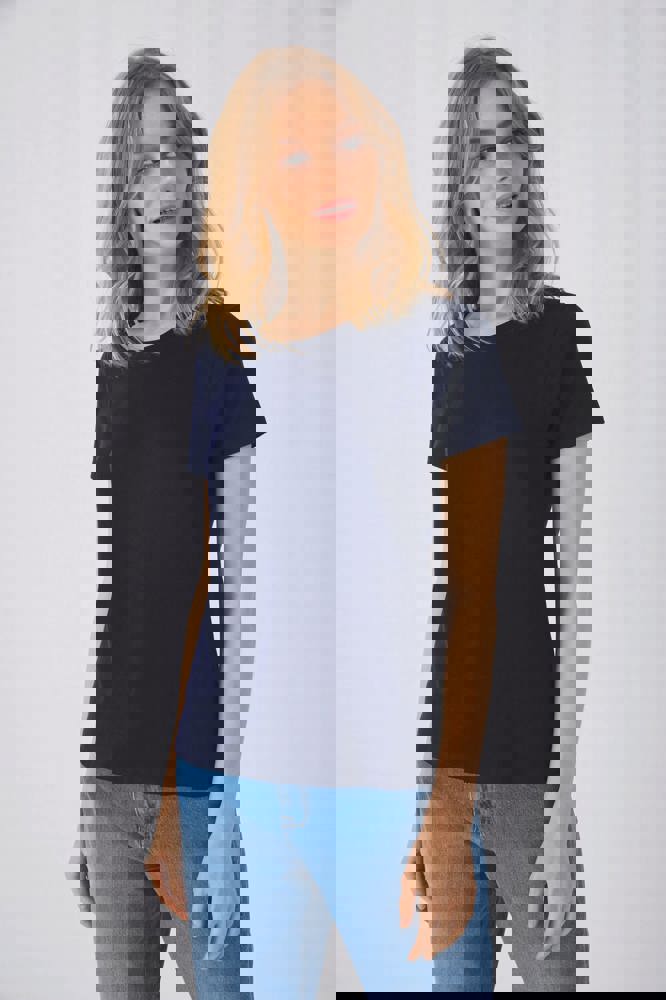 Dit is het #E150 Ladies' T-shirt. Het is een klassiek T-shirt voor dames met korte mouwen. Het T-shirt is gemaakt van 100% voorgekrompen ringgesponnen katoen. De uitzonderingen zijn Ash, Sport Grey, en enkele andere kleuren met een lichte mix van viscose. Het model heeft zijnaden en een comfortabele lichaamslengte. Het #E150 T-shirt heeft een moderne, klassieke snit. Dit maakt het geschikt voor diverse doeleinden.