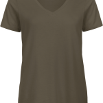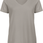 Het T-shirt is gemaakt van 100% biologisch of biologisch in conversion katoen. Het katoen is ringgesponnen en gekamd. De stofkwaliteit is Single Jersey. Dit zorgt voor een aangenaam en extra zacht aanvoelen. Het dames T-shirt heeft een comfortabele lengte. Er zijn praktische zijnaden aanwezig. De V-hals is afgewerkt met een fijne rib. De hals is ook afgewerkt met een bies.