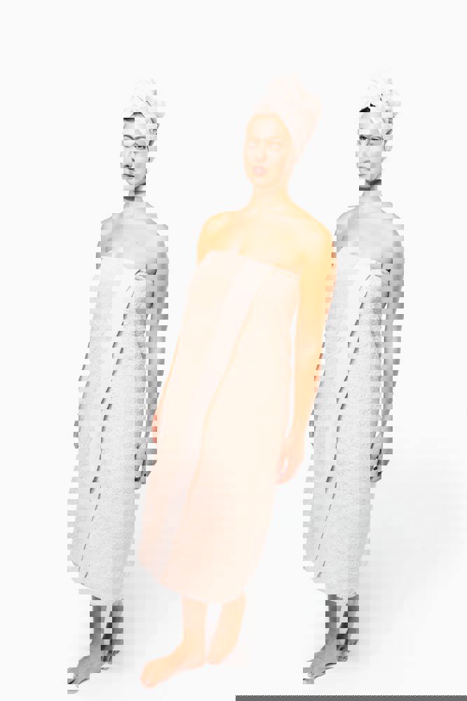 De badhanddoek heeft een afmeting van 150 bij 100 centimeter. Het materiaal is 100% biologisch katoen. De handdoek is uitgevoerd in een Boucle weefsel. Hij beschikt over een speciale platte Terry-rand aan één zijde. Dit maakt bedrukking technisch mogelijk. De badhanddoek is verkrijgbaar in de kleuren Navy, Black, White, Sage, Hibiscus Red, Iron Grey en Linen.