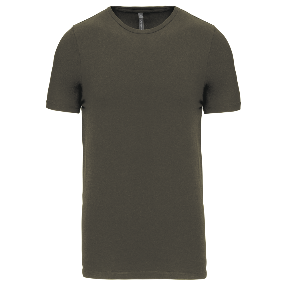 Het T-shirt is vervaardigd uit een hoogwaardige katoenmix. De samenstelling bevat 97% katoen en 3% elasthan. De chiné kleuren gebruiken 87% katoen, 9% viscose en 4% elasthan. Dit zorgt voor een aangenaam draagcomfort. De snit is nauwsluitend en modern. Het T-shirt heeft een verstevigde ronde hals. De mouwuiteinden en de onderkant zijn afgewerkt met een dubbel stiksel.