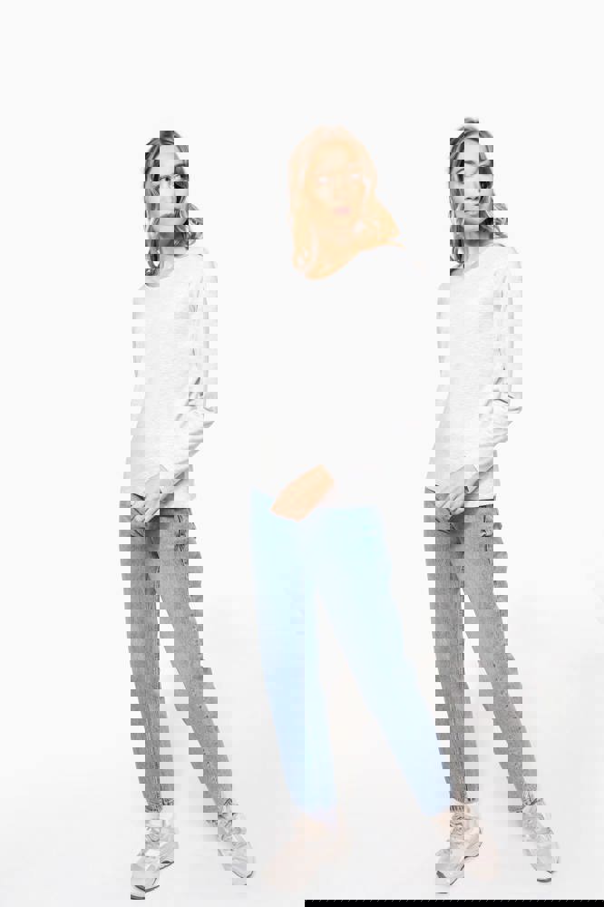 Dames T-shirt lange mouwen bedrukken ronde hals gekamd katoen