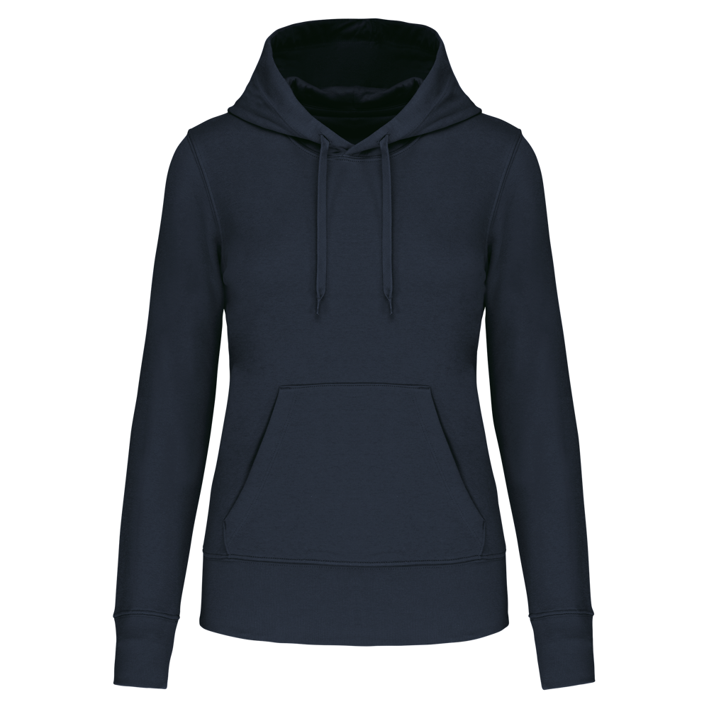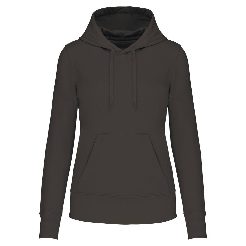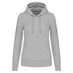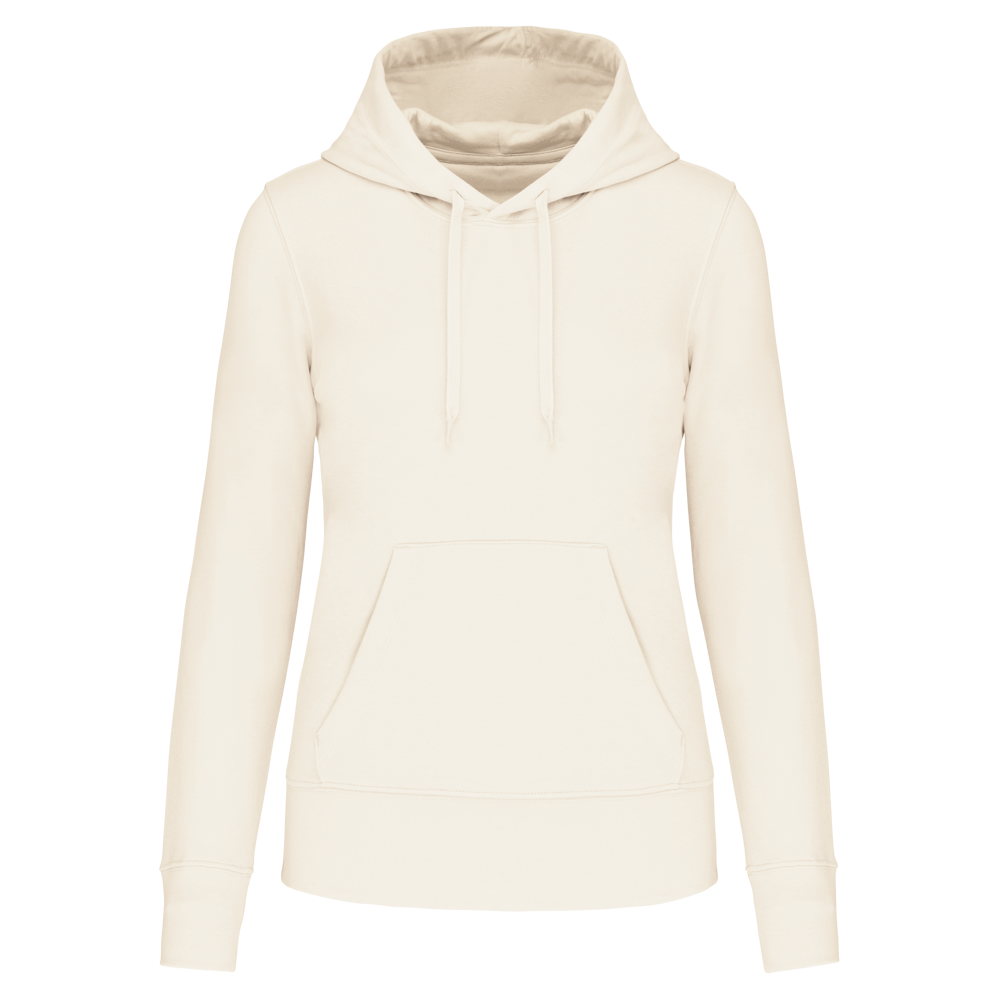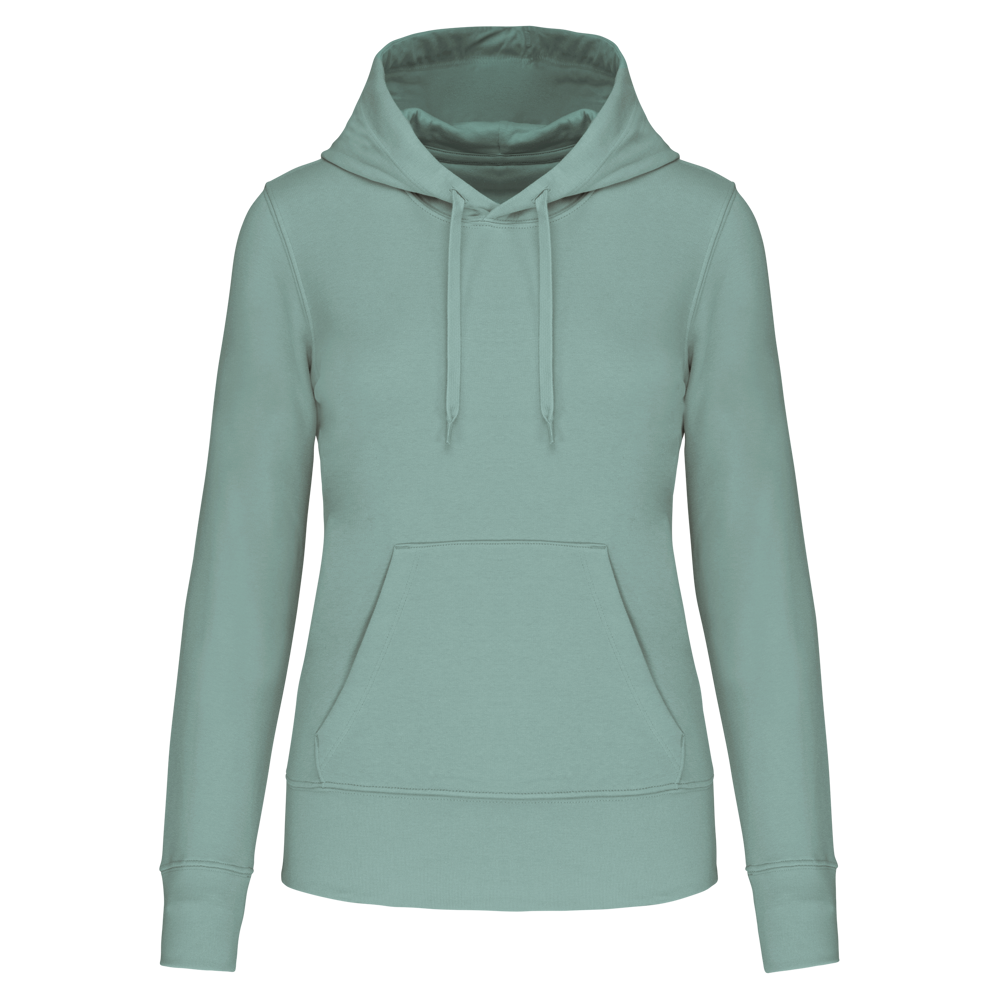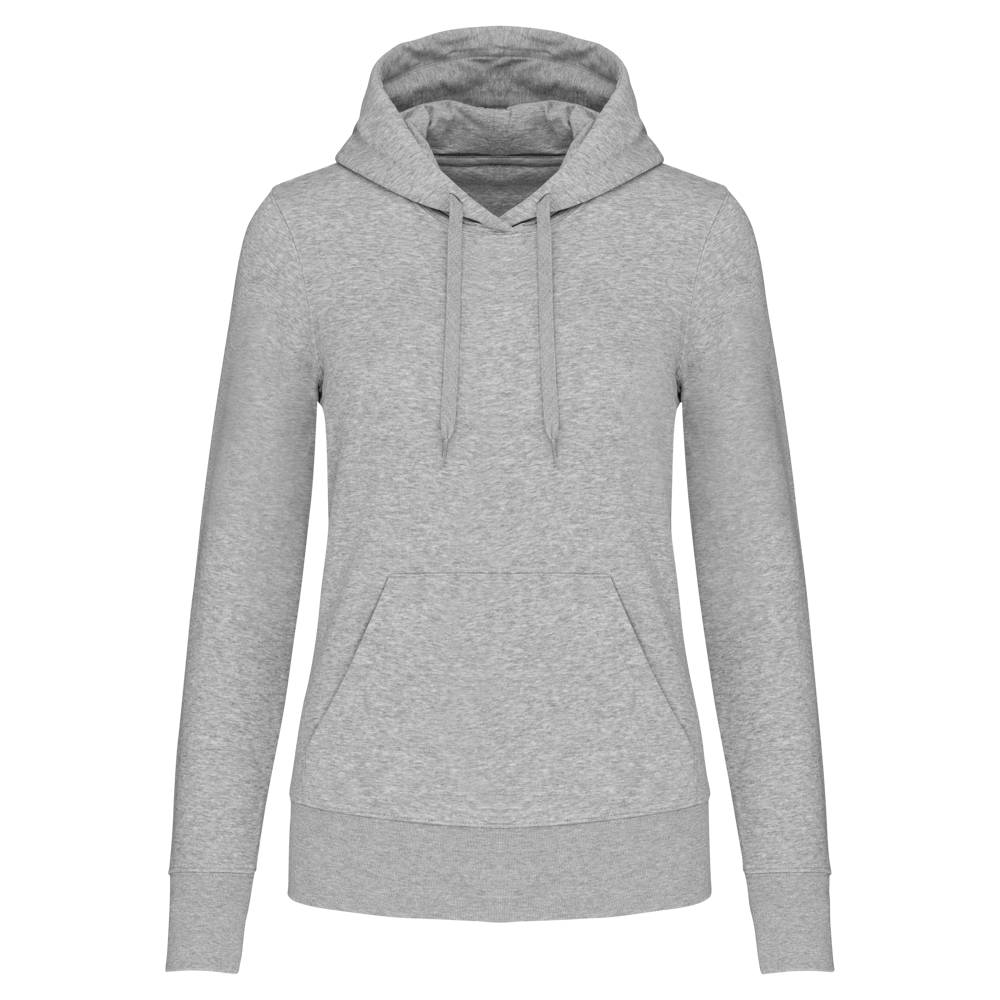 Dit is de ecologische damessweater met capuchon voor zakelijke klanten. Je gebruikt deze hoodie voor promotionele doeleinden. De sweater is gemaakt van 85% biologisch katoen. De overige 15% is gerecycled polyester. De hoodie combineert draagcomfort met een duurzame keuze. Je kunt deze ecologische damessweater laten bedrukken met jouw eigen bedrijfslogo.