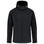 Dit is de K413 Heren softshell jas. De jas heeft een afneembare capuchon. Softshell is een functioneel materiaal dat bestaat uit drie lagen. De jas is ademend en waterdicht. Je gebruikt deze softshell jas voor zakelijke promotie of op evenementen.