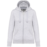 Dit is een Damessweater met rits en capuchon. De sweater is gemaakt van een katoen/polyester mix. Het buitenoppervlak bestaat uit 100% gekamd katoen. De binnenkant is voorzien van geborsteld fleece voor warmte en comfort. Dit kledingstuk is geschikt voor promotioneel gebruik.