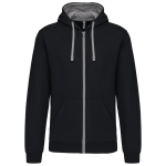 Dit is de K466 Herensweater. Het betreft een sweater met een volledige rits en een capuchon. De capuchon is uitgevoerd in een opvallende contrasterende kleur. Dit zorgt voor een moderne uitstraling. De K466 is een comfortabel kledingstuk voor promotie of als onderdeel van bedrijfskleding.