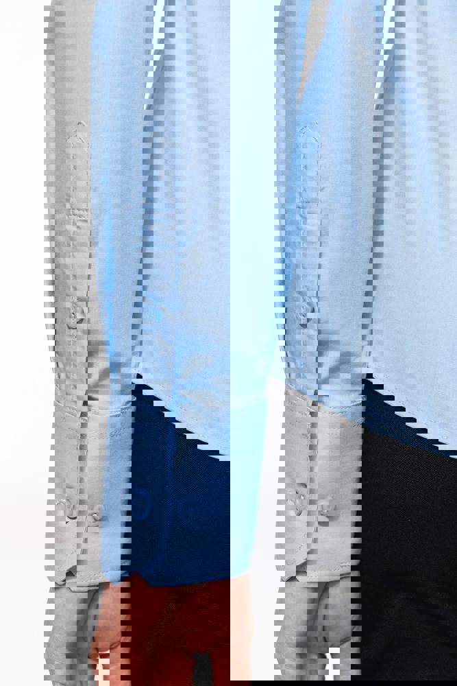 Het overhemd combineert 65% polyester met 35% popelinekatoen. De stof heeft een EasyCare-behandeling, wat het strijken minimaliseert. Er zijn twee borstzakken aanwezig, beide met een klepsluiting. Eén zak heeft een geïntegreerde penhouder. De knopen zijn toon-op-toon en passen bij de kleur van het overhemd. De knooplijsten op de schouders zijn bedoeld voor galons (epauletten zijn niet inbegrepen). De manchetten zijn verstelbaar met knopen.