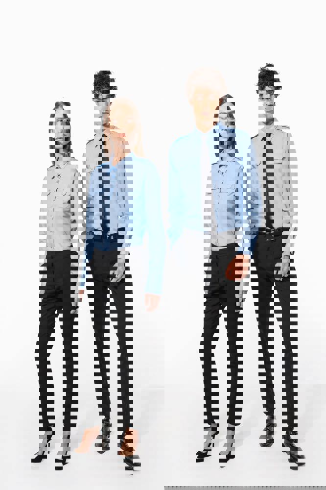 Dit overhemd wordt veelvuldig ingezet als werkkleding in horeca, beveiliging en luchtvaart.