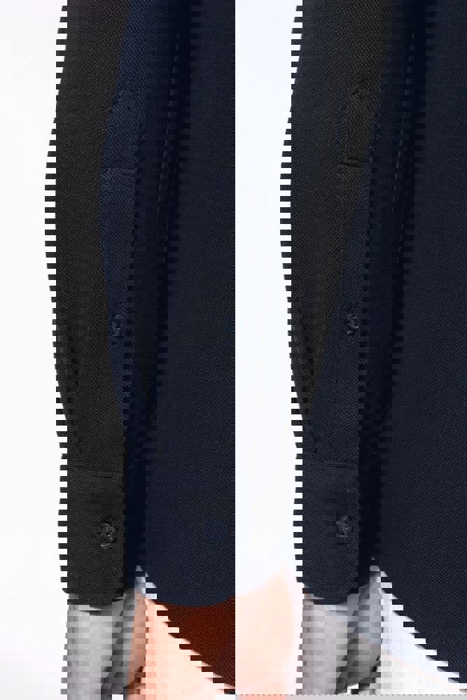 Het materiaal is 100% gekamd katoen piqué. Het overhemd heeft een klassieke knooplijst. De knopen zijn uitgevoerd in toon-op-toon. De lange mouwen zijn voorzien van regelbare manchetten. Dit zorgt voor een optimale pasvorm. De onderkant van het Piqué overhemd heeft een afgeronde boord.