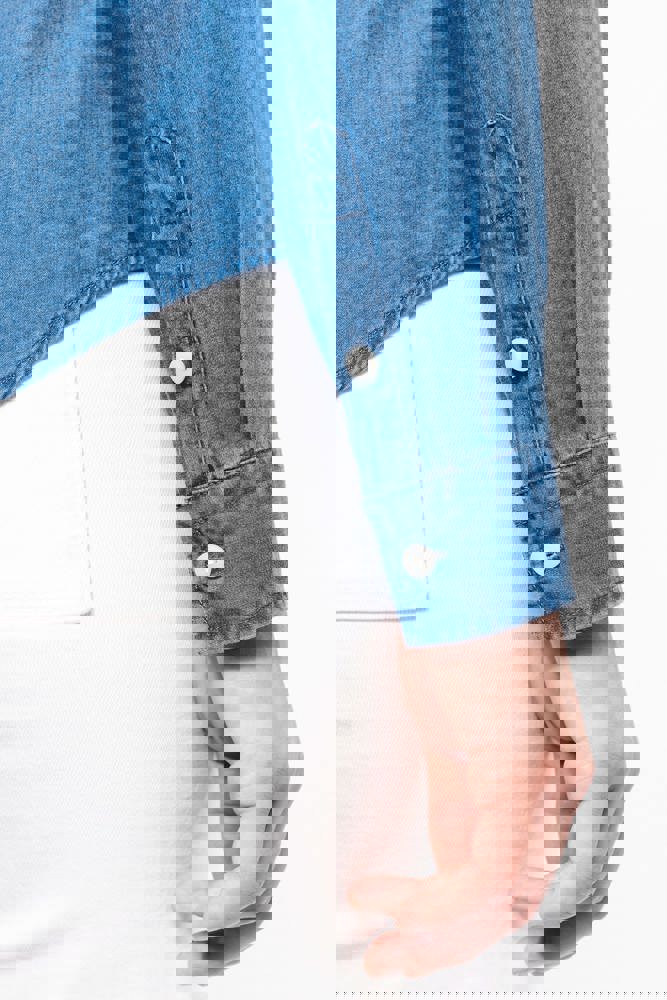 De vintage denimlook maakt de blouse geschikt voor diverse evenementen.