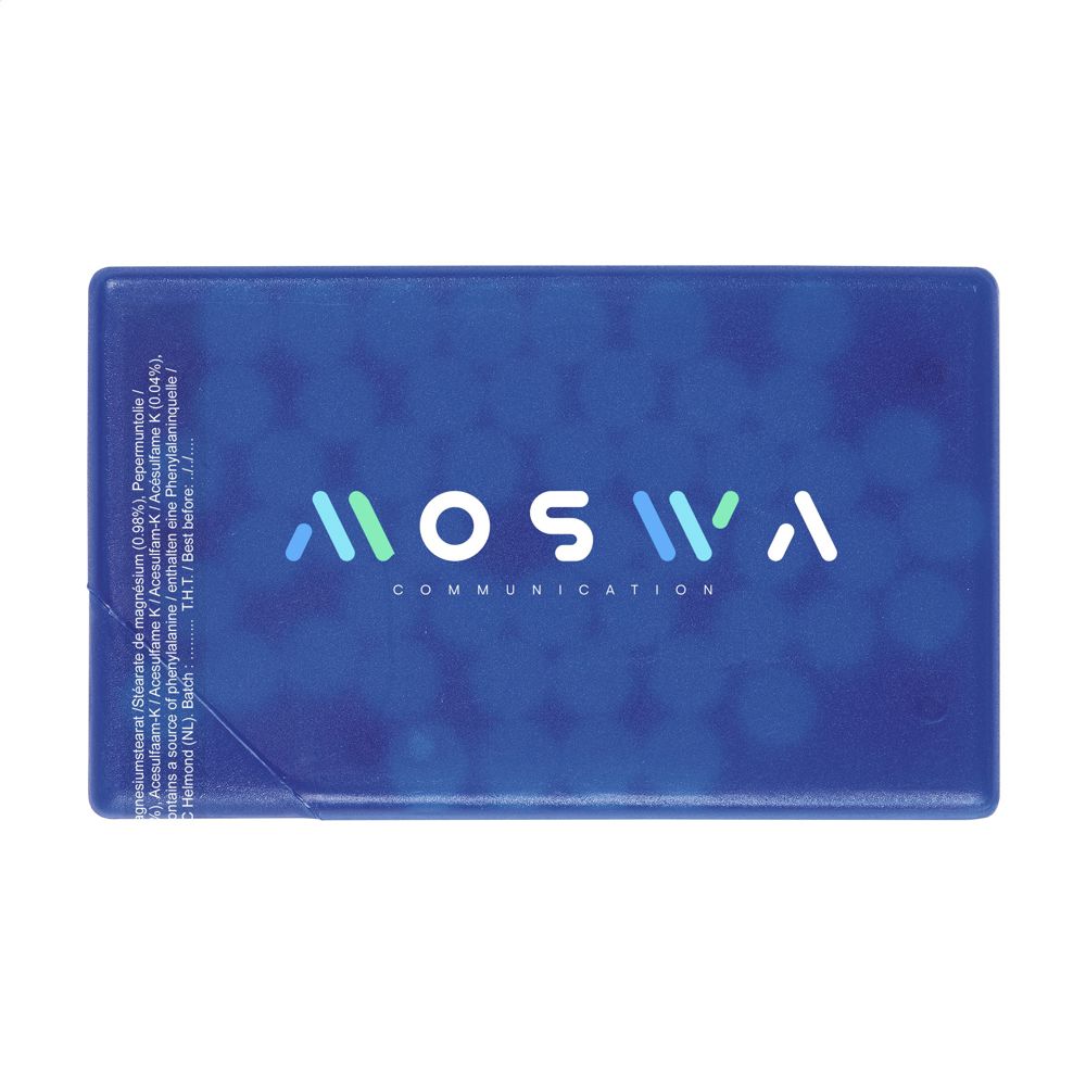 De compacte suikervrije creditcard dispenser is een praktisch promotieartikel gevuld met pepermuntjes. Dit artikel heeft een plat ontwerp waardoor het gemakkelijk in een broekzak of tas past. Je kunt deze dispenser laten voorzien van een eigen logo voor een professionele presentatie van je bedrijf.