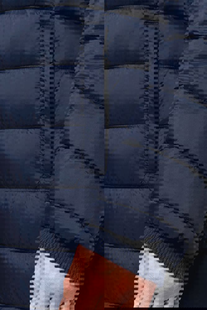 Het buitenmateriaal is gemaakt van 100% polyamide. De binnenvoering bestaat uit polyester. De parka is warm en zeer licht. De jas heeft twee zakken aan de voorkant. Er is een borstzak voorzien van een rits. De hoofdrits is verborgen onder een drukknooplijst. De kraag en de mouwen zijn afgewerkt met ribboord. De vulling in de parka is geïnjecteerd.