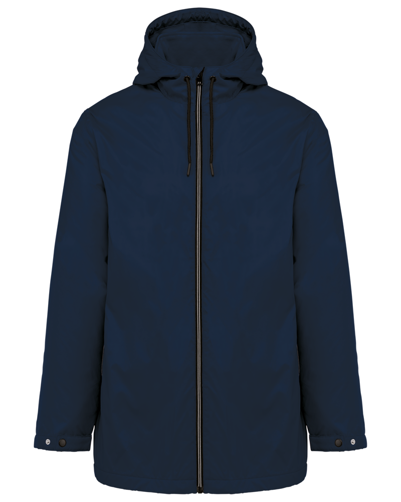 De buitenstof bestaat uit 100% polyamide 210T. De voering is van 100% microfleece polyester. De body en kraag zijn ook gevoerd met microfleece. De capuchon is driedelig en gevoerd. De mouwen zijn gewatteerd en voorzien van een polyester voering. De jas heeft zwarte ritsen. Er zijn twee ritszakken aan de voorkant. Er is één binnenzak met klittenbandsluiting. De capuchon heeft zwarte aanrijgkoordjes. De jas is verkrijgbaar in verschillende maten, waaronder S t/m 4XL.