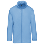 De windbreaker is opvouwbaar in zijn eigen binnenzak met het K-WAY® systeem.
