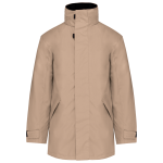De buitenkant van de parka bestaat uit 100% Oxford polyester. De binnenkant is voorzien van gewatteerd polyester voor isolatie. De parka heeft twee praktische voorzakken, beide afgesloten met een rits. Er zijn twee binnenzakken beschikbaar, waarvan één specifiek voor jouw GSM. De capuchon van de parka is netjes verborgen in de kraag. De kraag is afgewerkt met een zachte fleecevoering. De ritssluiting is weggewerkt onder een lijst die sluit met drukknopen en klittenband. Je kunt de mouwuiteinden eenvoudig verstellen door middel van klittenband.