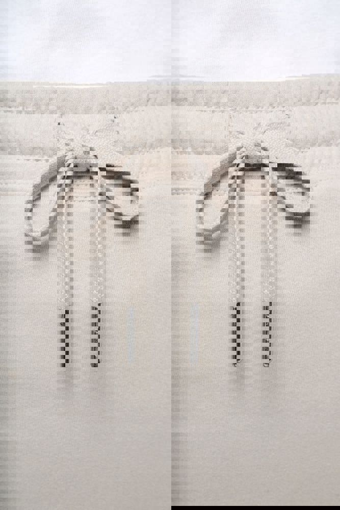 De tailleband is elastisch en voorzien van platte aanrijgkoordjes van biologisch katoen.