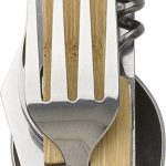 De set bestaat uit meerdere functionele onderdelen. Je ontvangt een lepel, een vork en twee messen. De set bevat ook een handige geïntegreerde flesopener. Het bestek is vervaardigd uit duurzaam bamboe. De onderdelen kunnen zowel door links- als rechtshandigen gebruikt worden. Elke bestekset wordt individueel verpakt. De verpakking is een stevige bruine kartonnen doos.