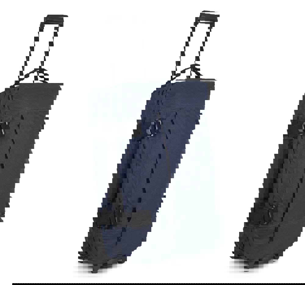 De trolley is vervaardigd uit sterk 600D polyester. Het hoofdcompartiment bevat twee interne vakken. Deze zijn voorzien van interne aansnoerriemen. Er is een intrekbaar trolleysysteem voor gemakkelijk transport. De buitenzijde heeft extra riemen om het volume aan te passen. De onderzijde is verstevigd in reliëf. Dit zorgt voor extra stabiliteit. De handgrepen zijn voorzien van stoppunten.