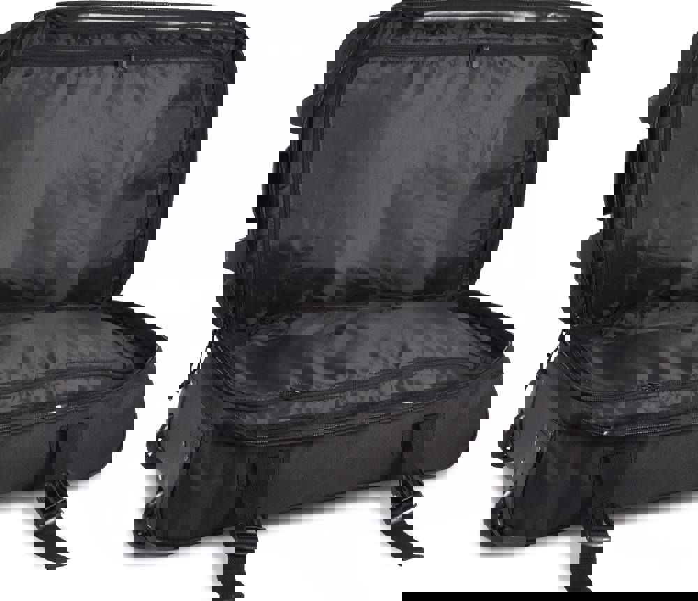 De trolley is vervaardigd uit sterk 600D polyester. De voorkant heeft een ruim ritsvak. Binnenin zijn twee vakken aangebracht. Deze vakken zijn voorzien van interne riemen. De riemen zorgen ervoor dat jouw bagage niet verschuift. Aan de buitenkant zitten riemen om het volume aan te passen. De trolley heeft een intrekbaar trolleysysteem. Dit systeem zorgt voor een comfortabel transport. De onderzijde is verstevigd. Dit verhoogt de stabiliteit en de levensduur van de trolley.