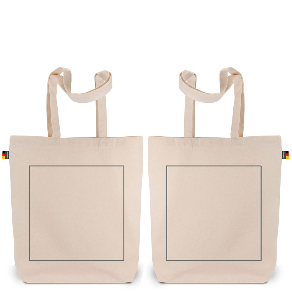 De tas is vervaardigd uit hoogwaardig en stevig katoen. Het gebruikte katoen is vaak OEKO-TEX gecertificeerd. Dit garandeert dat het textiel vrij is van schadelijke stoffen. De lange handvatten maken het mogelijk de tas over de schouder te dragen. De tas heeft een duidelijke bodemvouw. De keuze voor duurzaam katoen draagt bij aan een betere milieubalans voor jouw promotiecampagne.