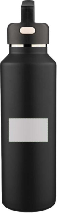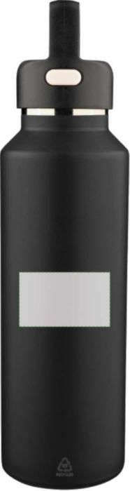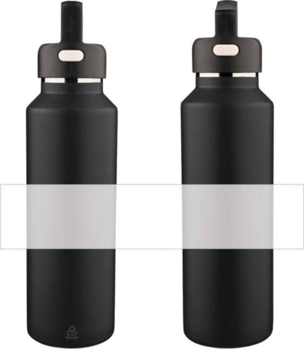 De drinkfles heeft een inhoud van 600 ml. Hij is vervaardigd uit gerecycled roestvrij staal. De fles beschikt over een dubbelwandige vacuümconstructie. De binnenzijde is van RVS 304. De buitenzijde is van RVS 201. De fles heeft een PP-deksel met een geïntegreerde draaglus. Je ontgrendelt de deksel door twee zijknoppen in te drukken. Sluiten gaat door de deksel terug te klikken. De drinkfles bevat een gelaserd logo ter aanduiding van het gerecyclede materiaal.