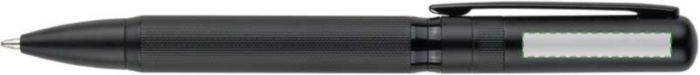 Ecobrass balpen met draaimechanisme en kleurgecoördineerde metalen clip. Voorzien van blauw schrijvende Duitse Dokumental-inkt met een schrijfduur van ongeveer 1.000 meter. Individueel verpakt in een zwarte schuifdoos.