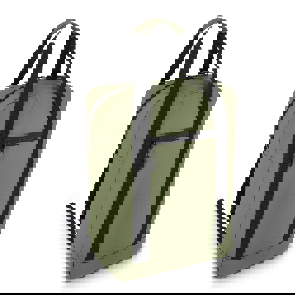 De rugzak is vervaardigd uit 600D gerecycled PET. Dit materiaal is voorzien van een waterbestendige PU-coating. De rugzak beschikt over verstelbare schouderbanden. Deze banden zijn uitgerust met reflecterende strips. De rugzijde is gewatteerd. Je hebt de beschikking over dubbele handvatten aan de bovenzijde. De tas bevat een gevoerd laptopvak voor apparaten tot 15.6 inch. De beschikbare kleuren zijn Zwart, Grijs, Donkerblauw en Olijfgroen.