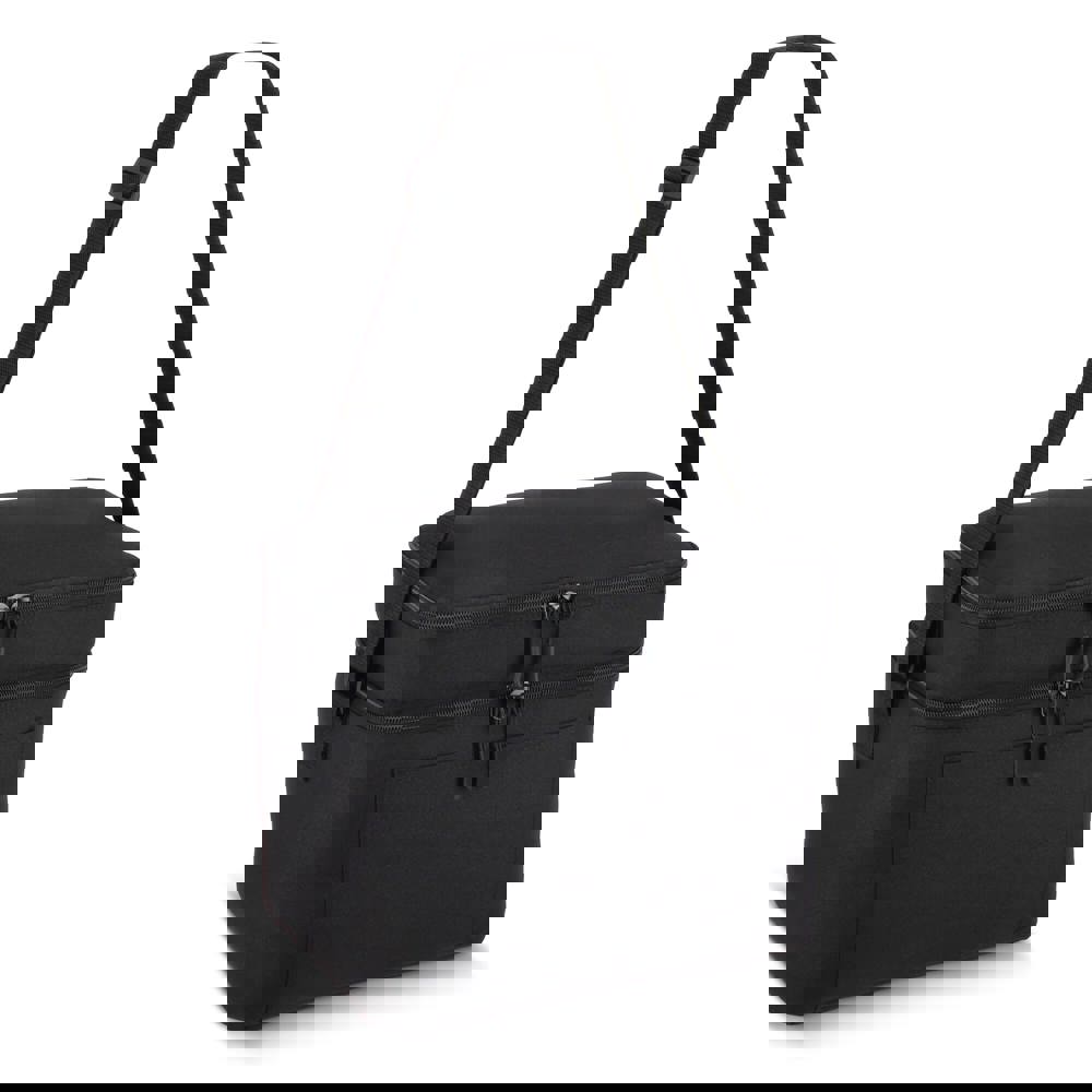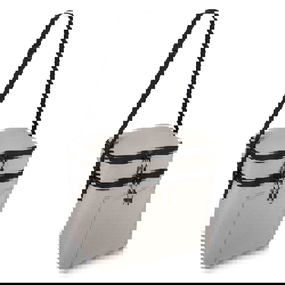De koeltas is vervaardigd uit robuust 600D gerecycled PET (rPET). De afmetingen zijn 30 x 20 x 25 cm. Het totale volume bedraagt 12 L. De tas beschikt over een groot ondervak en een kleiner bovenvak. De binnenzijde is uitgerust met een isolerende PEVA-voering. De verstelbare schouderriem zorgt voor draagcomfort. Je kunt de koeltas bestellen in Zwart, Grijs en Donkerblauw.