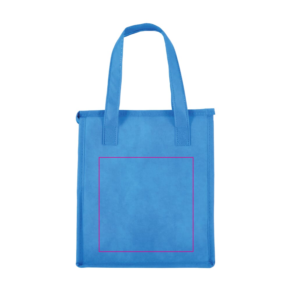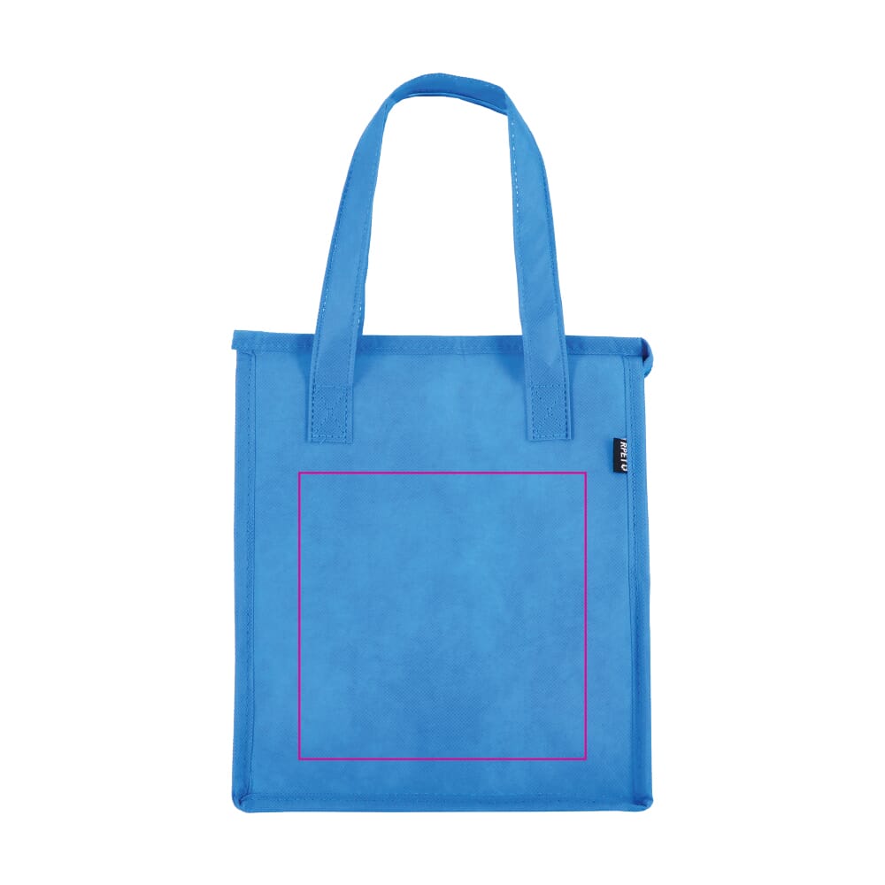 Dit artikel is een compacte R-PET koeltas. De koeltas is vervaardigd uit gerecycled non-woven materiaal (75 g/m²). Je gebruikt deze duurzame tas om etenswaren en drankjes koel te houden. De afmetingen maken de koeltas ideaal voor lunchpakketten of kleine boodschappen. Je kunt deze promotionele koeltas laten bedrukken met een eigen logo.