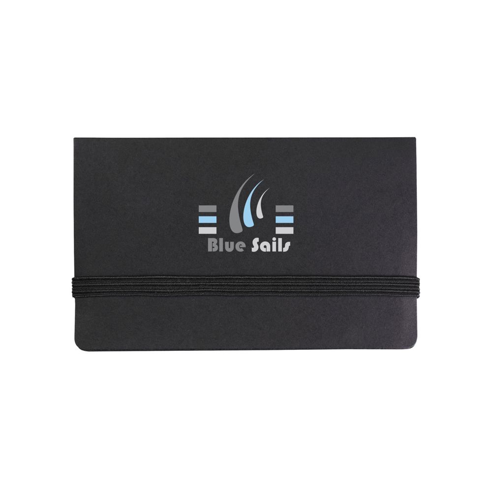 Dit product is een praktisch notitieboekje met diverse extra functies. Het boekje bevat 25 zelfklevende memovelletjes en 125 beschrijfbare markeerstickers. Er is een speciale houder voor visitekaartjes aanwezig in het ontwerp. Een elastische sluiting houdt alle onderdelen netjes op hun plek. Je kunt dit notitieboekje laten bedrukken met je eigen logo voor een professionele uitstraling.