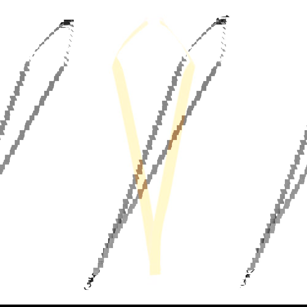 Het producttype is een lanyard, ook wel nekkoord genoemd. Het materiaal is FSC-gecertificeerd papier. De lanyard heeft zwarte accenten voor een duidelijk contrast. De kleur van het materiaal is natuur. Het nekkoord is ontworpen om licht van gewicht te zijn. Het is geschikt voor het bevestigen van ID-houders of sleutelbossen. De minimale afname is van toepassing op dit promotionele artikel.