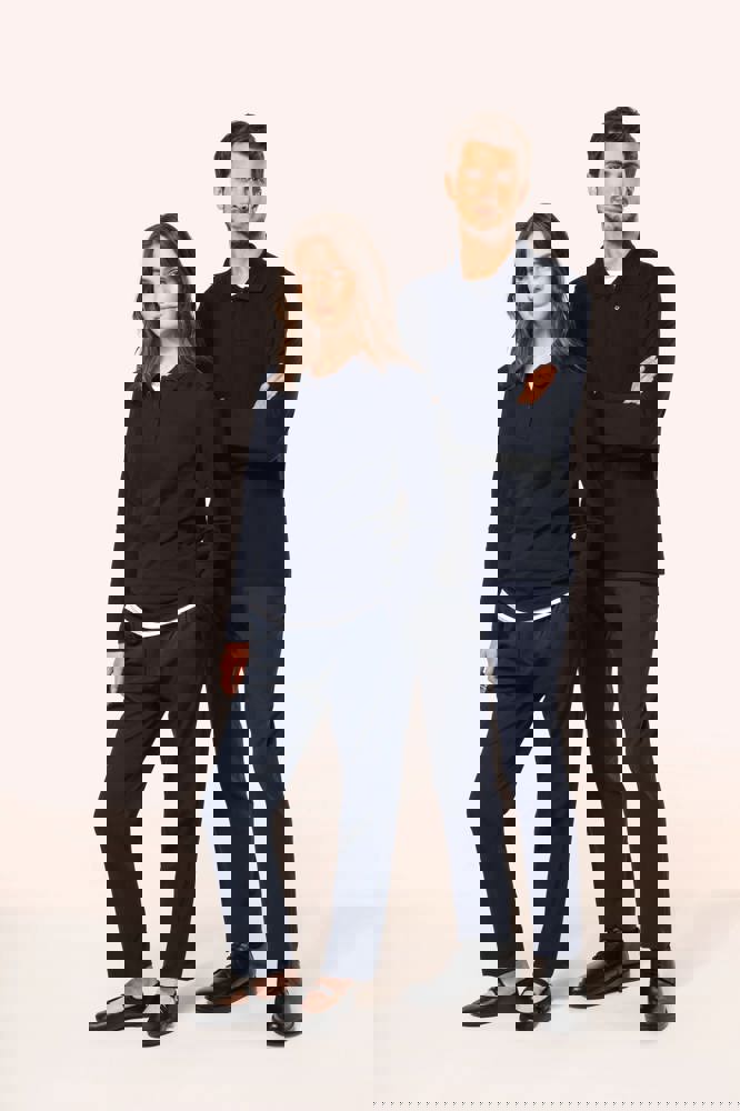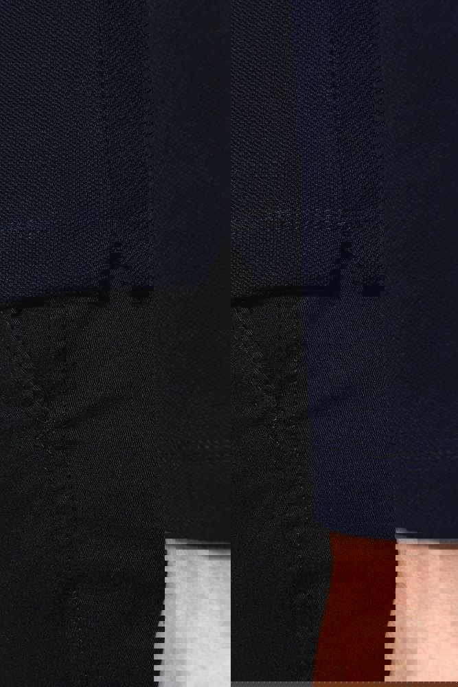 De stof bestaat uit een piquébreisel van Supima® katoen en elasthan. De kraag is uitgevoerd in 1x1 ribboord. Er is een ton-sur-ton knopenlijst met twee knopen. De schoudernaad is extra verstevigd met een siliconen bandje. De mouwuiteinden en de onderkant zijn afgewerkt met een zoom met dubbel stiksel. Dit verhoogt de duurzaamheid van de polo.