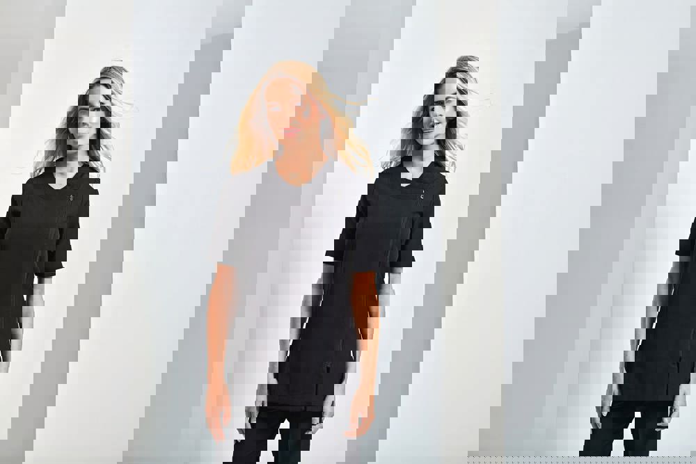 Je gebruikt deze tuniek in diverse professionele omgevingen. Denk aan schoonheidssalons en spa-instituten. Ook klinieken en wellnesscentra gebruiken dit model. Het is functionele werkkleding. Tegelijkertijd biedt het een verzorgde, uniforme uitstraling. De asymmetrische sluiting zorgt voor een moderne look. Door de zijsplitjes heb je voldoende bewegingsvrijheid tijdens je werk.