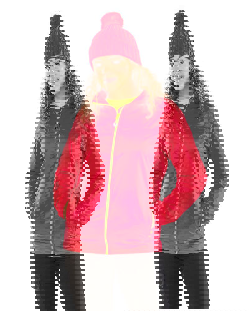 Het jasje is gemaakt van 100% nylon. Dit materiaal maakt het jasje winddicht. De waterkolom bedraagt 3.000 mm. Het jasje is tevens ademend met een capaciteit van 1.000 g/m²/24u. Er is een volledige ritssluiting in een contrasterende kleur aanwezig. De naden zijn getapet voor extra waterbestendigheid. Het jasje heeft zijzakken, waarvan één met ritssluiting. De capuchon is geïntegreerd en elastisch.